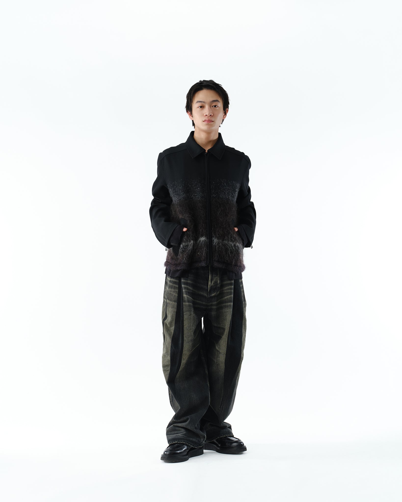 シーズンテーマ【DUSK / DAWN】を体現する、ニットドッキング仕様のミニマルスポーツジャケット。