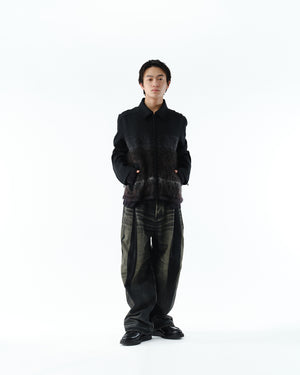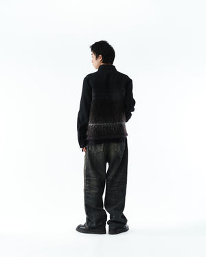 ボディにはSUBLATIONS定番のHEAVY WOOLを採用し、前身頃の一部には、6色の糸を用いた抽象的なグラフィックが織り込まれたジャカードニットを使用。