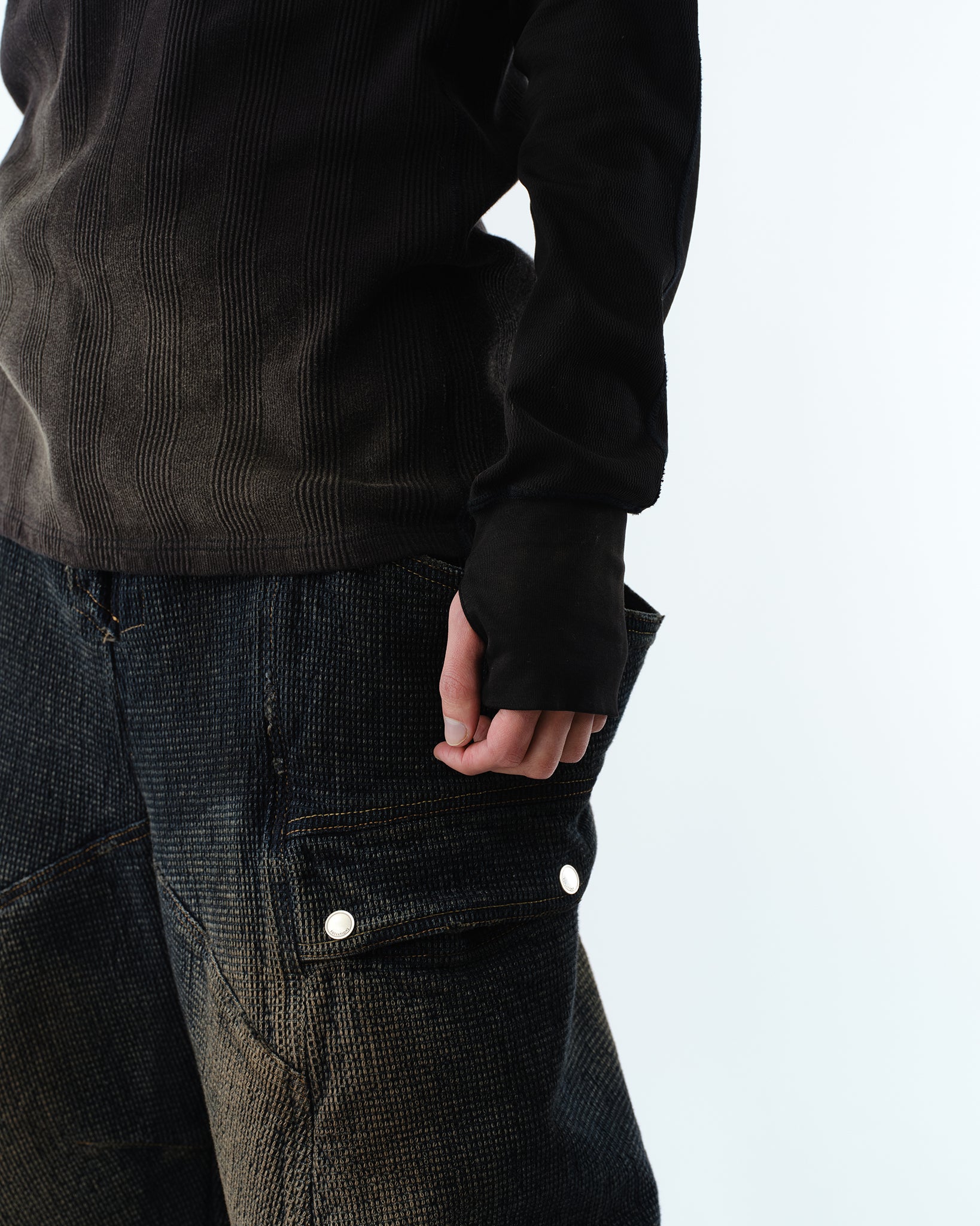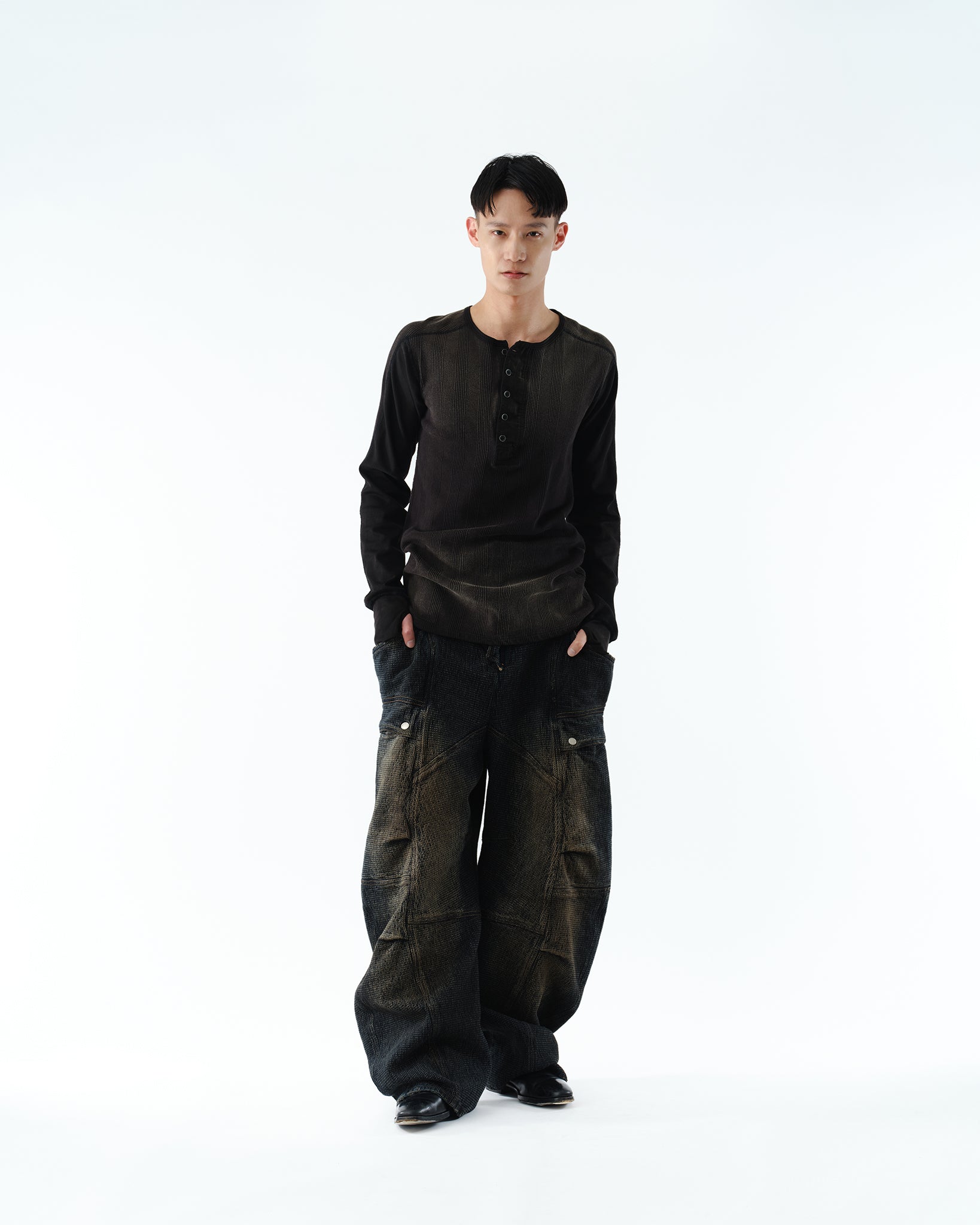 丹念に染め上げた生成りの生地に、繊細なブリーチ加工を施すことで、時を重ねるごとに深みを増すヴィンテージライクな風合いを表現。