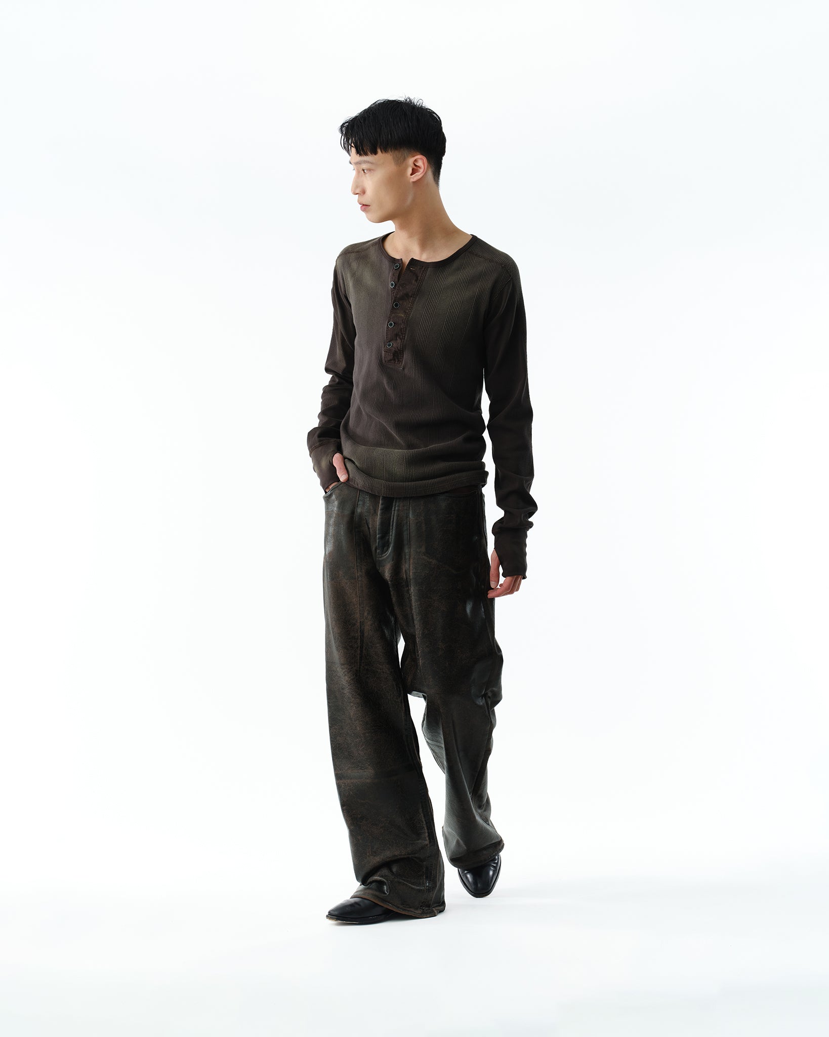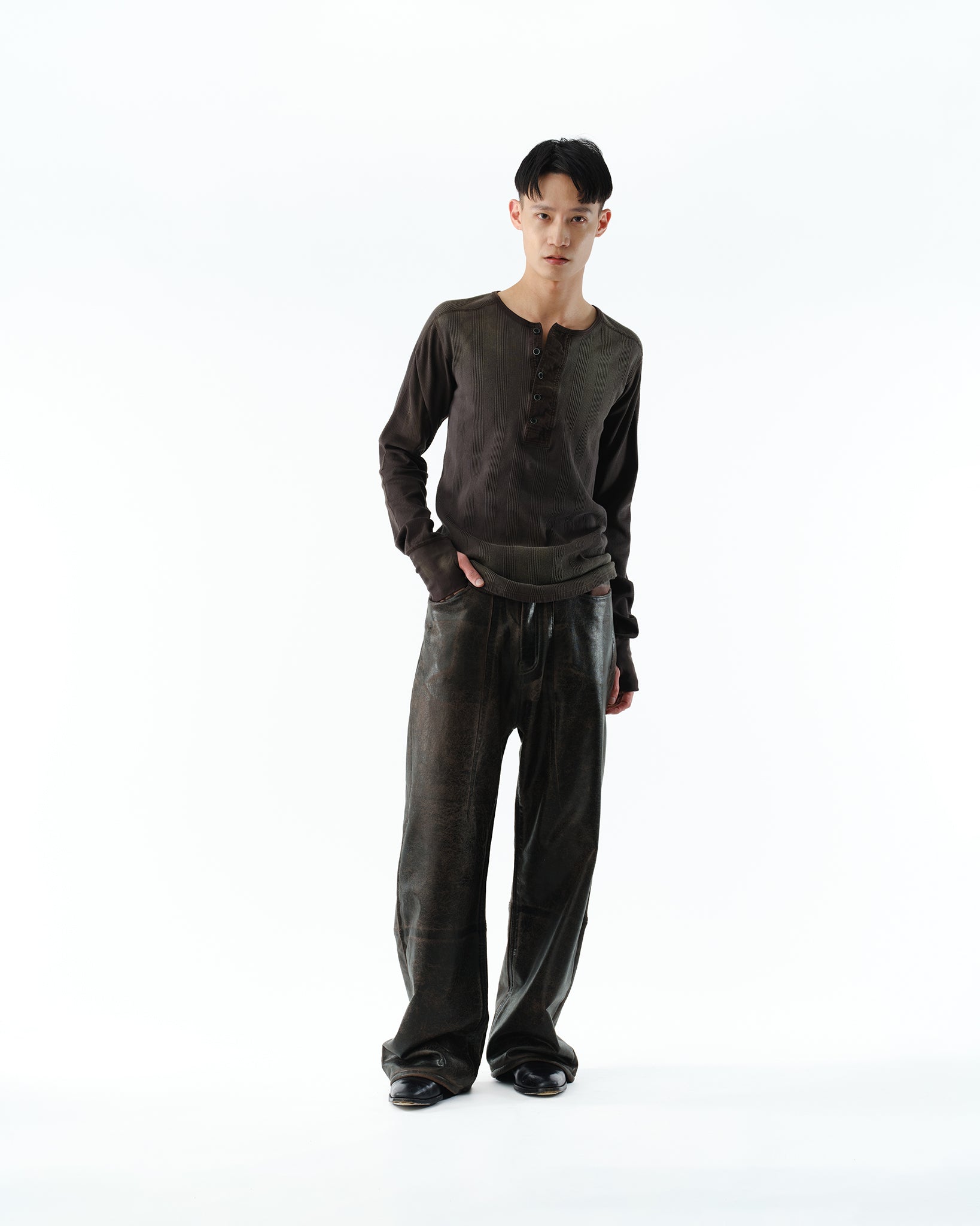 MILITARY THERMAL HENRYNECK SHIRT .14【FADE BROWN】