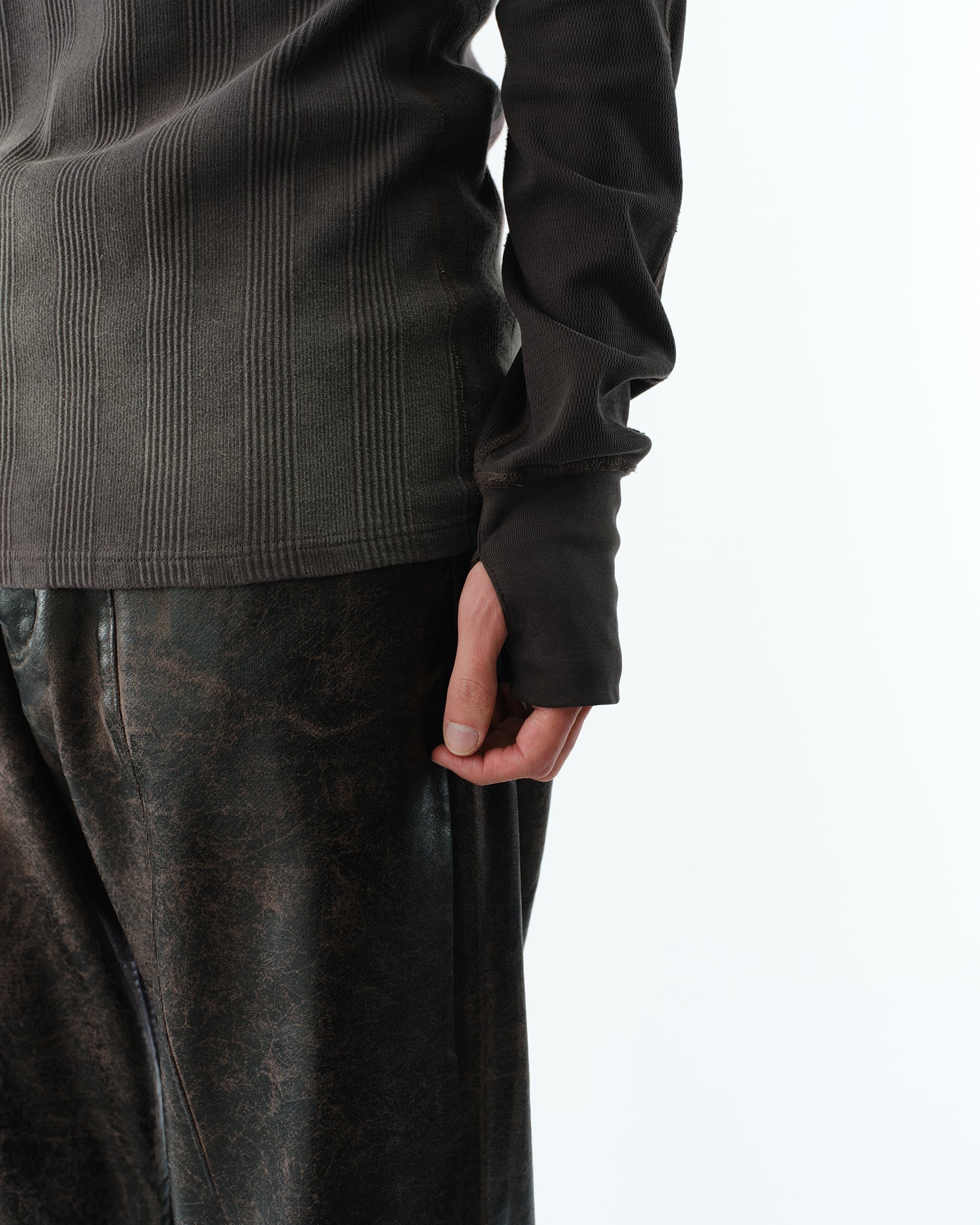 ハニカム仕様のスリーブとパネルリブのコンビネーションが、上質な仕立てを際立たせます。