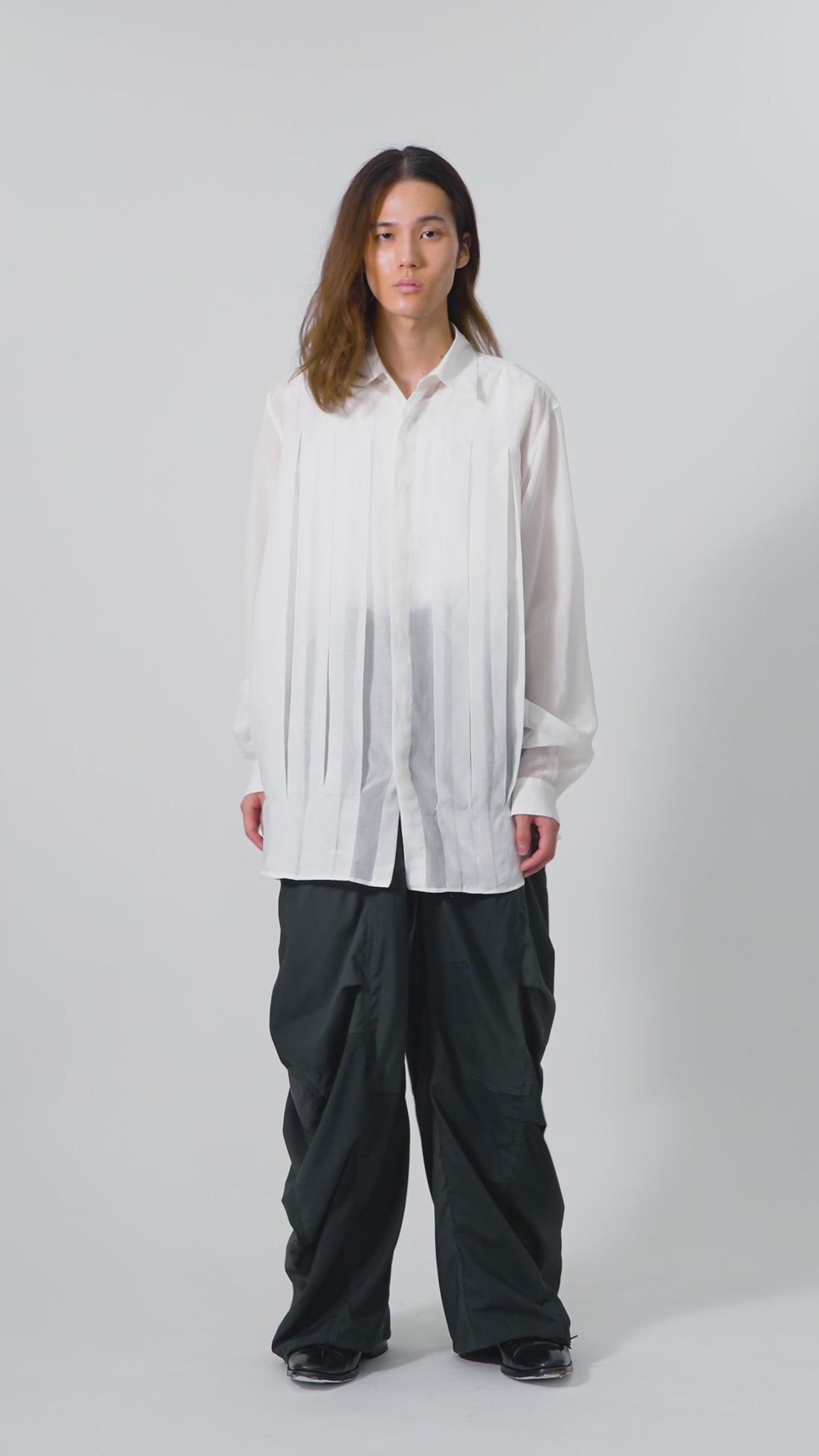 柔らかなドレープ感とリラックスした着用感により、スポーツ・ミリタリー・ドレスといったジャンルを越境する新しいベーシックピースへと昇華させました。