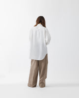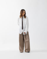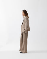 SUBLATIONSオリジナルのサマーツイードを用いて仕立てた、構築的なシルエットが際立つワイドパンツ。