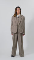 同素材のジャケットやウェストコートとのセットアップスタイルも可能で、シーズンを通して幅広く活躍します。